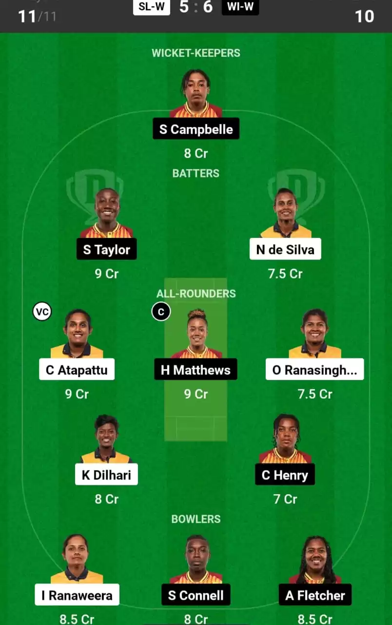 SL-W vs WI-W Dream11 Team Prediction & Match Preview