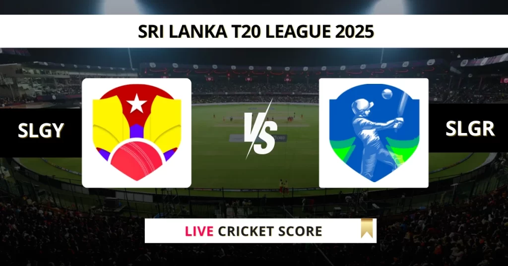 Get Live Score update of SLGY vs SLGR: Track the live match updates, scorecard, and key moments from Match 3 of SLC T20 League 2025 happening at Sinhalese Sports Club Ground, Colombo, today, August 10, 2025, 1:30 PM IST.