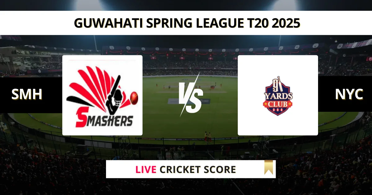 SMH vs NYC Live Cricket Score — The Smashers (SMH) vs 91 Yard Club (NYC) Match 21 in the Guwahati T20 Spring League 2025 is set for April 27, 2025, 9:00 AM IST, at Judges Field, Guwahati.