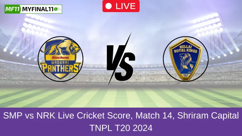 SMP vs NRK Live Score — The Siechem Madurai Panthers vs Nellai Royal Kings match in the Shriram Capital TNPL T20 2024 is set for July 15, 2024, at 07:15 PM IST at SNR College Cricket Ground, Coimbatore.