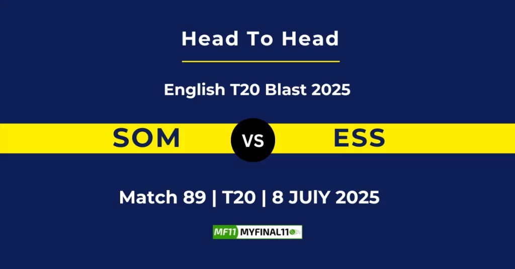 SOM vs ESS Player Battle, Head-to-Head Team Stats & Records, and more: Today in English T20 Blast (2025), Somerset (SOM) will take on Essex (ESS) at The Cooper Associates County Ground, Taunton, on 8th July 2025 at 11:00 PM.