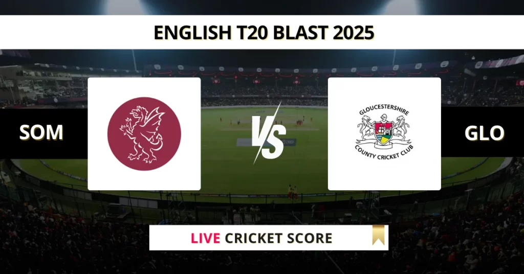 Get Live Score update of SOM vs GLO: Track the live match updates, scorecard, and key moments from Match 120 of English T20 Blast 2025 happening at The Cooper Associates County Ground, Taunton today, July 18, 2025, 11:00 PM IST.