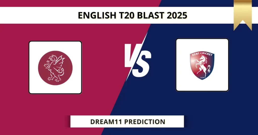 SOM vs KET Dream11 Prediction – Somerset and Kent will clash in Match 55 of English T20 Blast 2025. The exciting fixture takes place at The Cooper Associates County Ground, Taunton on June 15, 2025, 8:30 PM IST. Looking for the best SOM vs KET Dream11 prediction? Explore fantasy cricket tips, match preview, expert analysis, and probable playing XI.