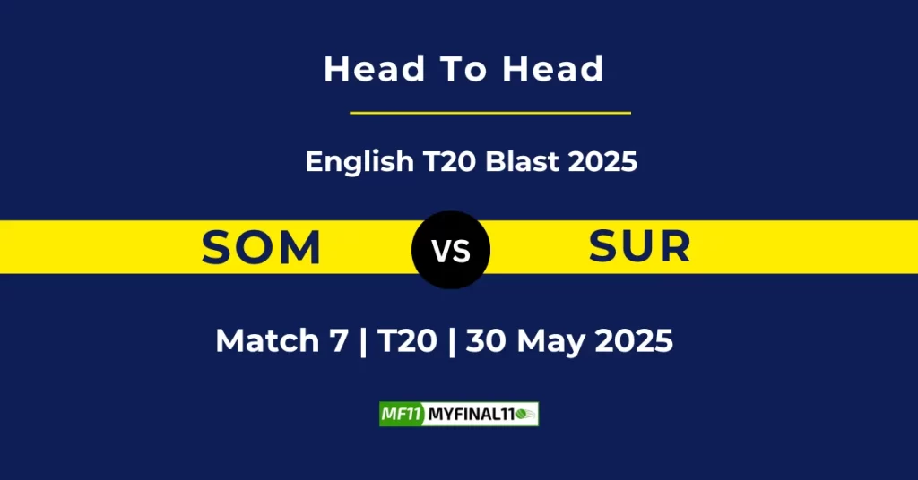 SOM vs SUR Player Battle, Head-to-Head Team Stats & Records and more: Today in Vitality Blast (2025), Somerset (SOM) will take on Surrey (SUR) at The Cooper Associates County Ground, Taunton, Taunton, on 30th May 2025 at 11:00 PM.