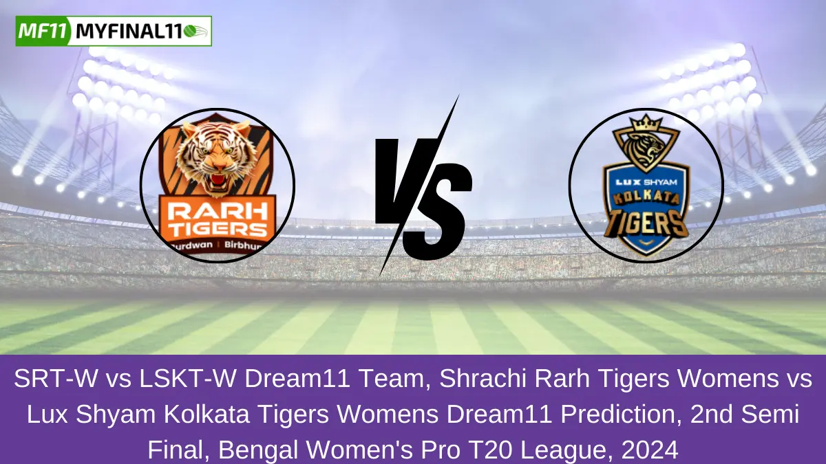 The 2nd Semi final T20 match of Bengal Women’s Pro T20 League, 2024 will be played between Shrachi Rarh Tigers Womens (SRT-W) and Lux Shyam Kolkata Tigers Womens (LSKT-W ) at Jadavpur University Campus, Kolkata, on 27th June 2024 at 1:30 PM IST. If you are interested, you can find more information about the SRT-W vs LSKT-W Dream11 Prediction Today Match, SRT-W vs LSKT-W Dream11 Team Today, Playing 11s, Pitch Report & SRT-W vs LSKT-W Player Stats in this article.