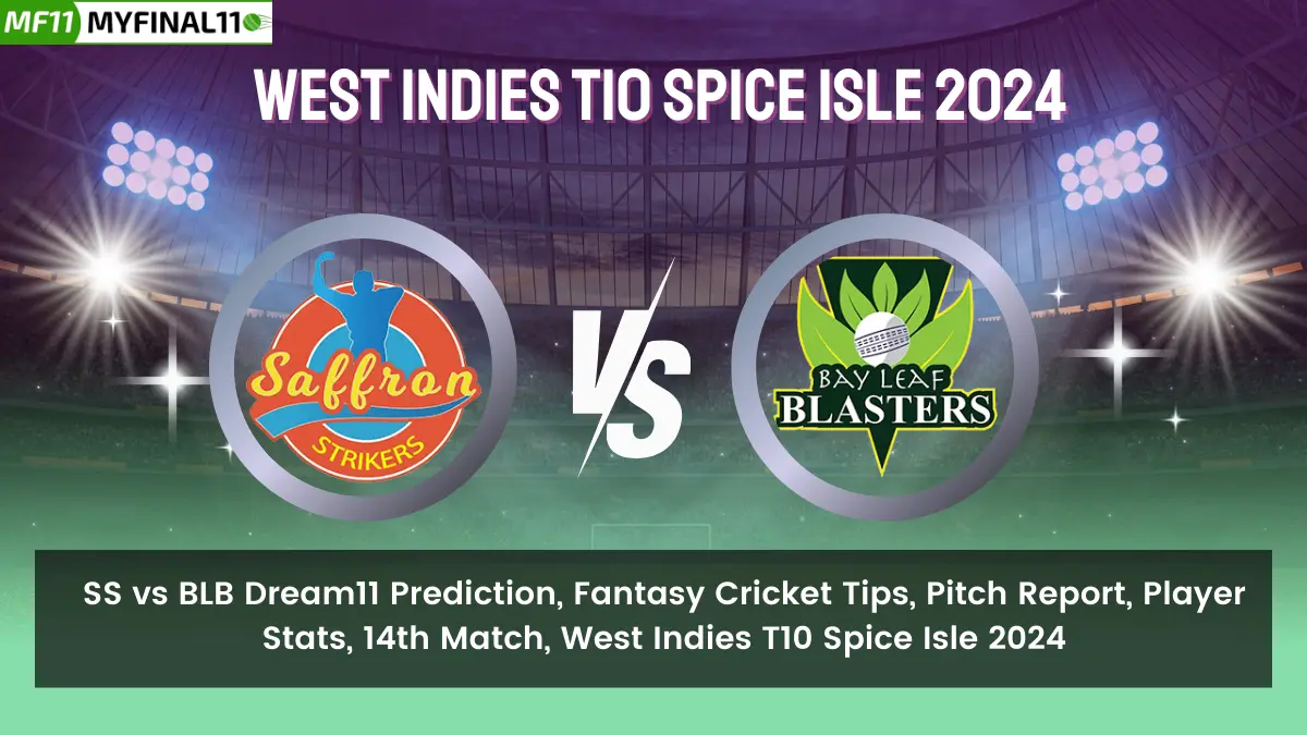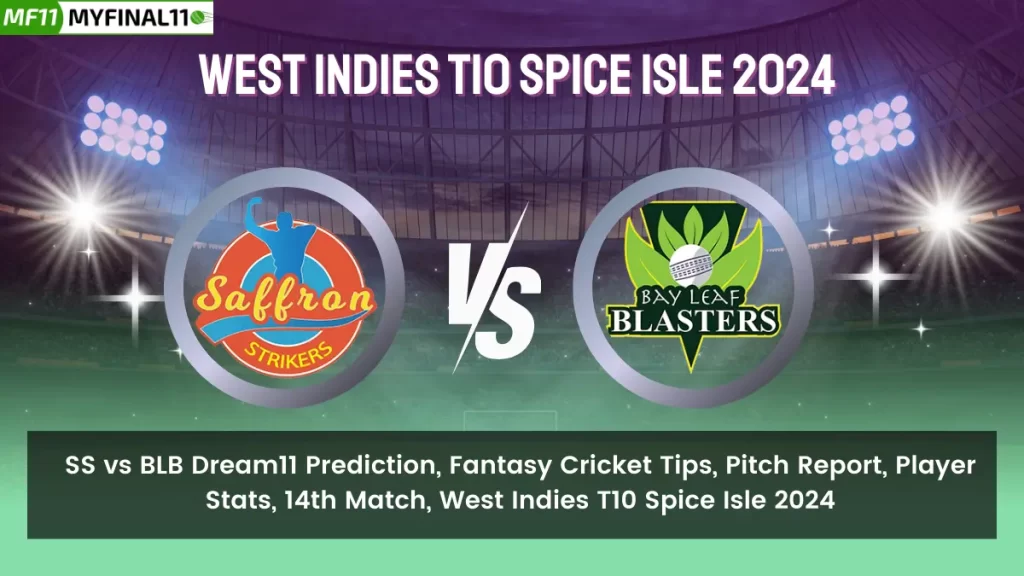 The 13th match of the West Indies T10 Spice Isle will be between Saffron Strikers (SS) and Bay Leaf Blasters (BLB) at La Sagesse Park, Grenada on 15th June 2024 at 12:30 AM IST. If you are interested, you can find more information about the SS vs BLB Dream11 Prediction Today Match, SS vs BLB Dream11 Team Today, Playing 11, and Pitch Report & SS vs BLB Player Stats in this article.