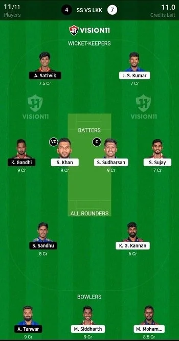 SS vs LKK Dream11 Fantasy Cricket Today Match Prediction Team