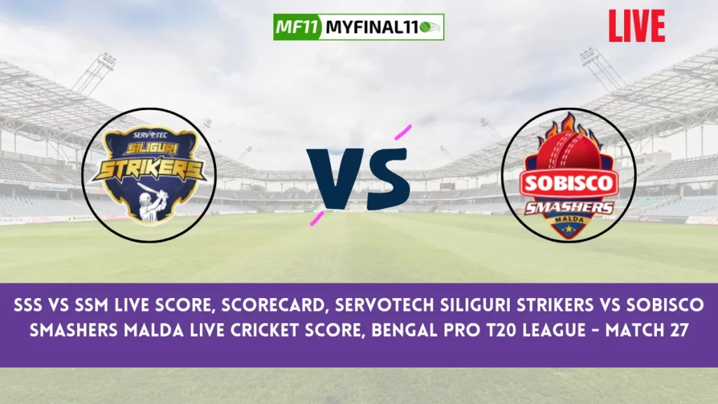 SSS vs SSM Live Score – Today’s 26th Bengal Pro T20 League match between Servotech Siliguri Strikers (SSS) and Sobisco Smashers Malda (SSM) will be held on June 24, 2024, at Eden Gardens, Kolkata. It will start at 07:00 PM IST. Cricket fans can follow the SSS vs SSM live cricket score, scorecard, and ball-by-ball match commentary on myfinal11. Live streaming for this match is available on the Fancode app/website.