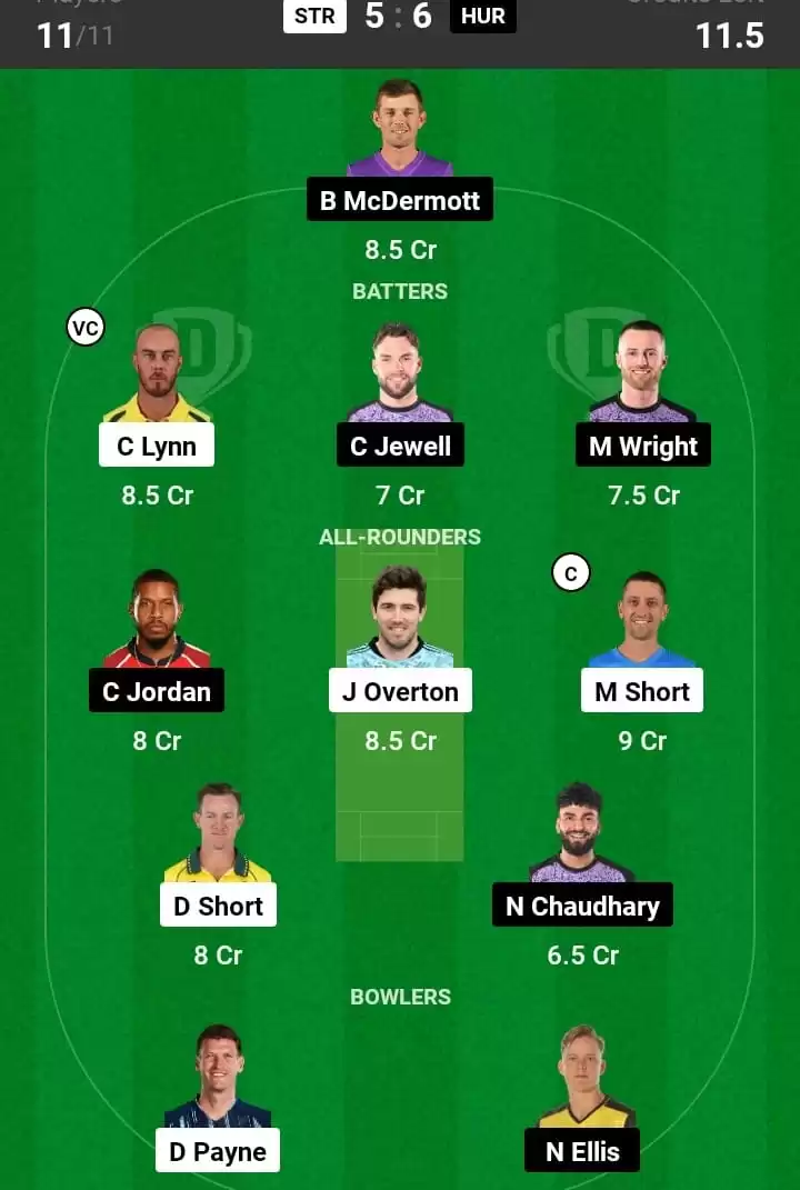 STR vs HUR Prediction Fantasy Expert Cricket Team: Australian T20 League Bash 2023