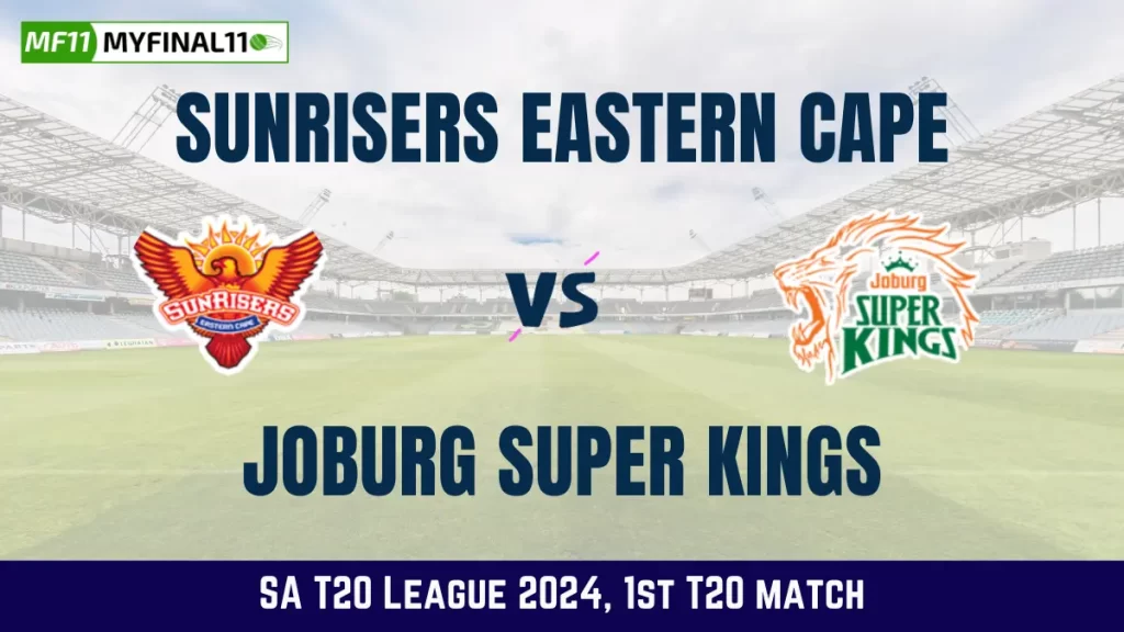 SUNE vs JSK Live Score Today SUNE vs JSK Live scorecard Live Cricket Score report & scorecard, SA T20 League, 2024 Catch live cricket score, ball-by-ball commentary, & highlights of the 1st Match of SA T20 League, 2024 – Sunrisers Eastern Cape is set to take on Joburg Super Kings at St George’s Park, Port Elizabeth at 09:00 PM IST. If you are looking for Today’s SUNE vs JSK live cricket score then you are at the right place.
