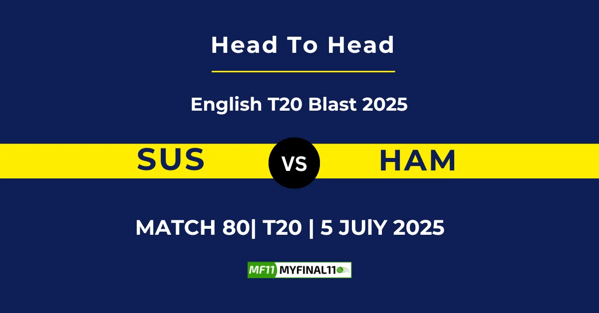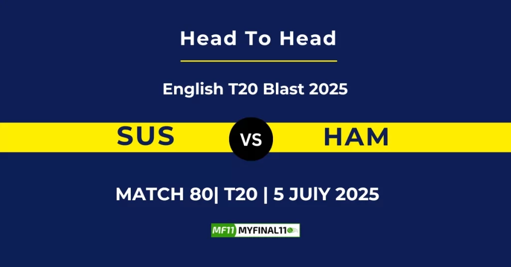 SUS vs HAM Player Battle, Head-to-Head Team Stats & Records and more: Today in English T20 Blast 2025, Sussex (SUS) will take on Hampshire (HAM) at County Ground, Hove, Brighton, on 5th July 2025 at 11:30 PM.