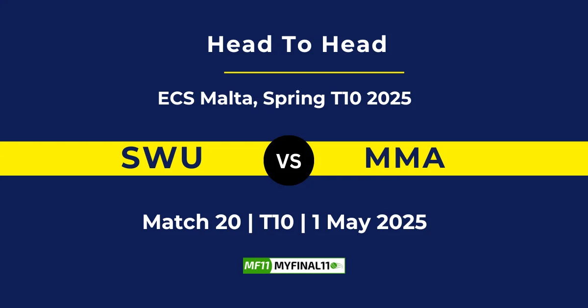 SWU vs MMA Player Battle, Head-to-Head Team Stats & Records and more: Today in ECS T10 Malta 2025, Swieqi United (SWU) will take on MMA Titans (MMA) at Marsa Sports Club, on 1st May 2025 at 9:00 PM.