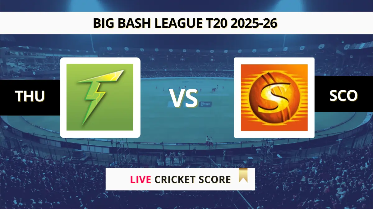 THU vs SCO Live Score: Stay updated with Sydney Thunder vs Perth Scorchers Cricket Team real-time scores and ball-by-ball coverage of the Match 16 in the Big Bash League 2025. The Sydney Thunder cricket team will face off against the Perth Scorchers cricket team at Sydney Showground Stadium on December 30, 2025, at 1:45 PM IST.