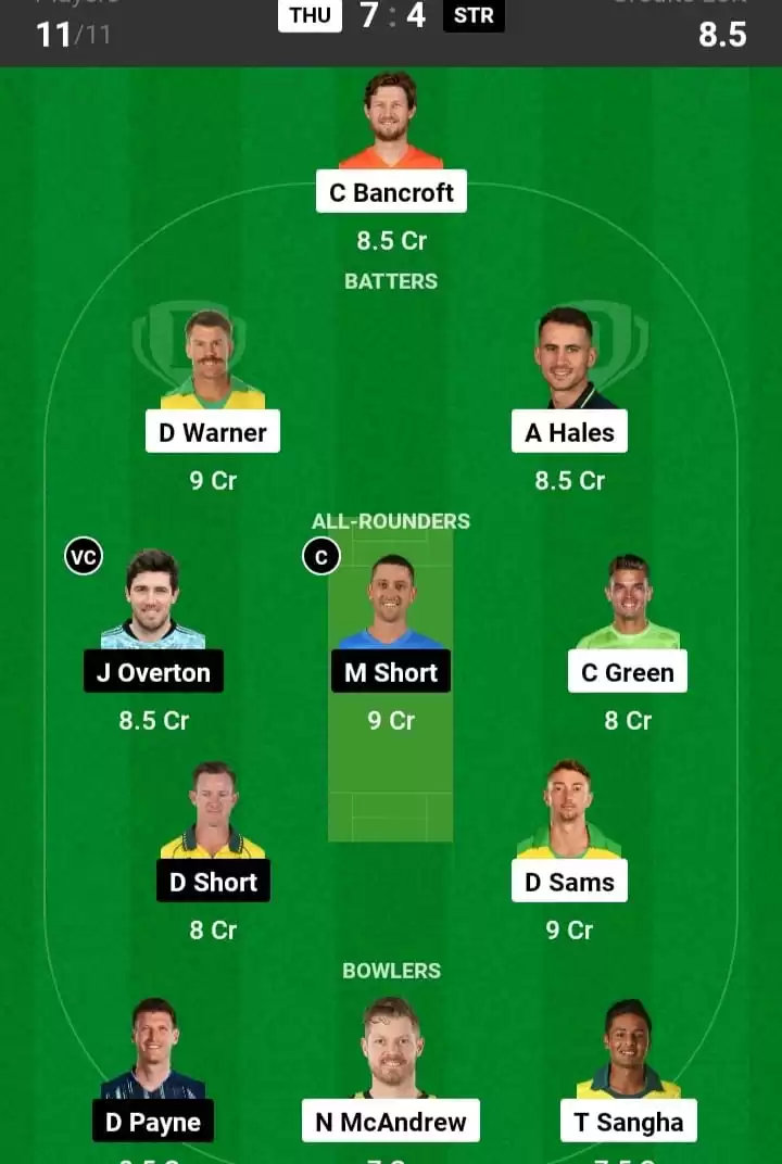 THU vs STR Prediction Fantasy Expert Cricket Team: Australian T20 League Bash 2023