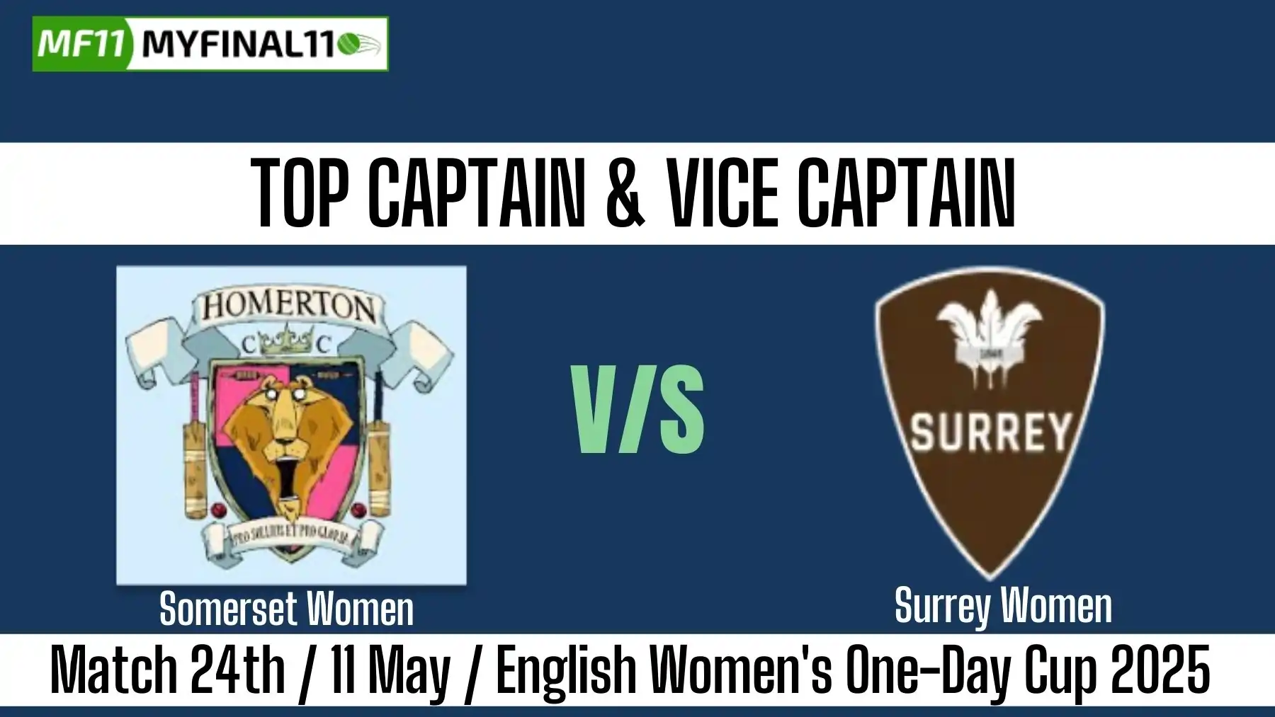 SOM-W vs SUR-W Top 3 Captain and Vice-Captain picks for 24th One-Day Match – English Women’s One-day Cup 2025 – Somerset Women (SOM-W) will face Surrey Women (SUR-W) in the 24th One-Day match of English Women’s One-day Cup 2025. In this article, we will suggest the top three contenders for captain and vice-captain positions on your English Women’s One-day Cup Dream11 Team.