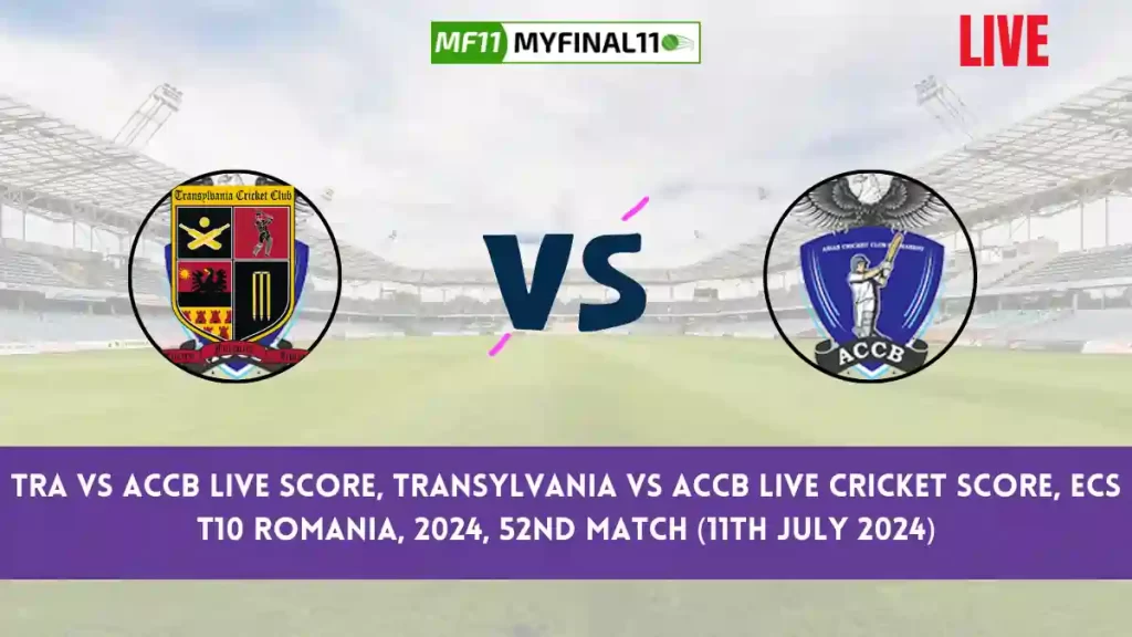 TRA vs ACCB Live Score — The Transylvania vs ACCB match in the ECS T10 Romania 2024 is set for July 11, 2024, at 01:30 PM IST at Moara Vlasiei Cricket Ground, Bucharest.