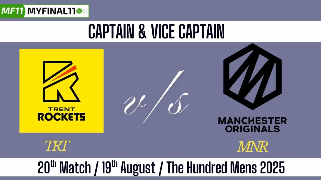 TRT vs MNR Top 3 Captain and Vice-Captain picks for 20th Match – The Hundred Mens 2025 – Trent Rockets (Men) (TRT) will face Manchester Originals (Men) (MNR) in the 20th match of The Hundred Mens 2025. In this article, we will suggest the top three contenders for captain and vice-captain positions on your The Hundred Mens Dream11 Team.