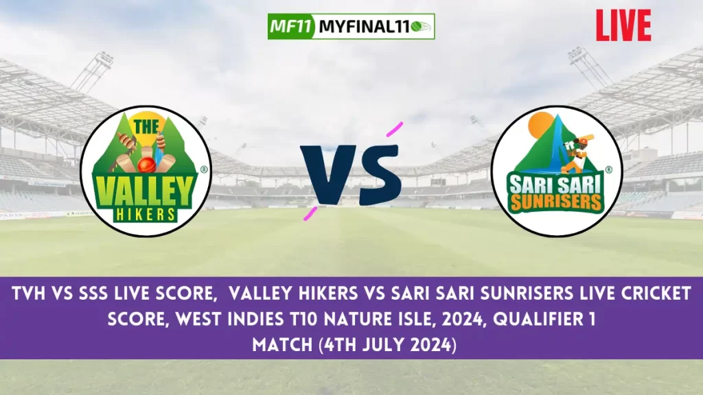 Get live score updates for the TVH vs SSS match as Valley Hikers (TVH) take on Sari Sari Sunrisers (SSS) in the Qualifier 1 West Indies T10 Nature Isle, 2024 match. Follow the live score and ball-by-ball commentary here. The match will begin on July 4th, 2024, at 09:30 PM IST and will be hosted at Windsor Park, Roseau. Live Streaming of this match is available on the Fancode, and for TVH vs SSS Live Cricket scorecard ball-by-ball commentary, Visit Here.