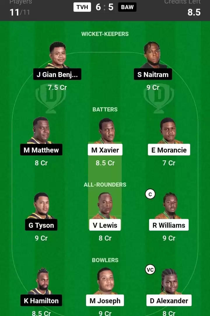 TVH vs TGS Live Fantasy Cricket Prediction Team