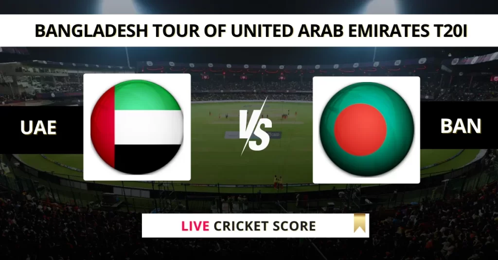 UAE vs BAN Live Cricket Score — The United Arab Emirates (UAE) vs Bangladesh (BAN) Match 1 in the UAE vs Bangladesh T20I 2025 2025 is set for May 17, 2025 8:30 PM IST, at Sharjah Cricket Stadium.