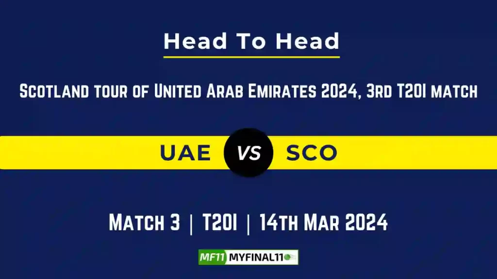 UAE vs SCO Head to Head, UAE vs SCO player records, UAE vs SCO player Battle, and UAE vs SCO Player Stats, UAE vs SCO Top Batsmen & Top Bowlers records for Upcoming Scotland tour of the United Arab Emirates 2024, 3rd T20I Match, which will see the United Arab Emirates taking on Scotland, in this article, we will check out the player statistics, Furthermore, Top Batsmen and top Bowlers, player records, and player records, including their head-to-head records.
