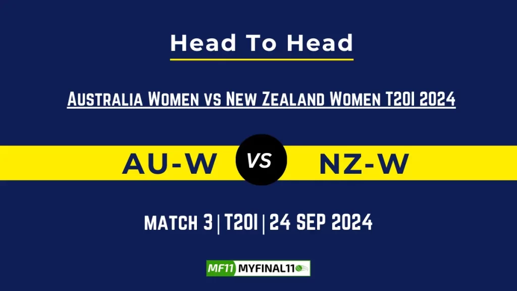 Get all the AU-W vs NZ-W player battle stats, records, and head-to-head between Australia Women (AU-W) and New Zealand Women (NZ-W). This is the 3rd Match of the Australia Women vs New Zealand Women T20I 2024 tournament held at Allan Border Field, on September 24th, 2024, at 2:40 PM IST. This article will provide details about AU-W vs NZ-W player stats, player records, and the battles between both teams.