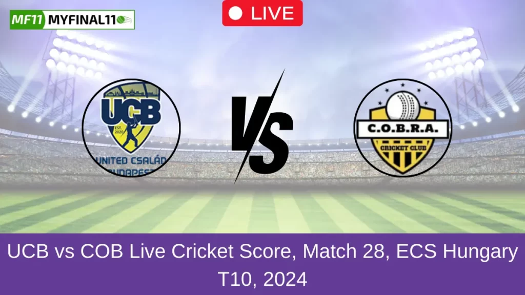 UCB vs COB Live Score — The United Csalad Budapest vs Cobra Cricket Club match in the ECS T10 Hungary 2024 is set for July 20, 2024, at 4:30 PM IST at GB Oval, Szodliget, Hungary. Cricket fans can follow the UCB vs COB live cricket score, scorecard, and ball-by-ball match commentary on myfinal11. Live streaming for this match is available on the Fancode app/website.