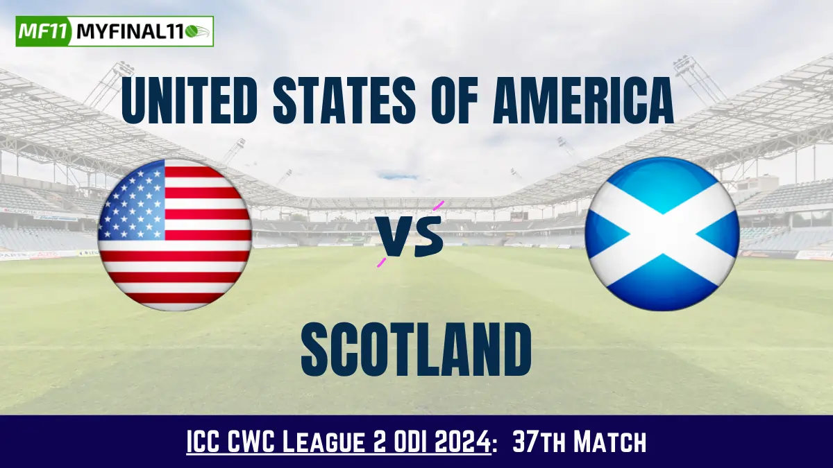 Get ready for an exciting clash in Match 37 of ICC CWC League 2 ODI 2024, where the United States of America (USA) will face Scotland (SCO) at Prairie View Cricket Complex, on October 25, 2024, at 9:00 PM IST. Both teams are aiming to win and improve their position in the group standings.