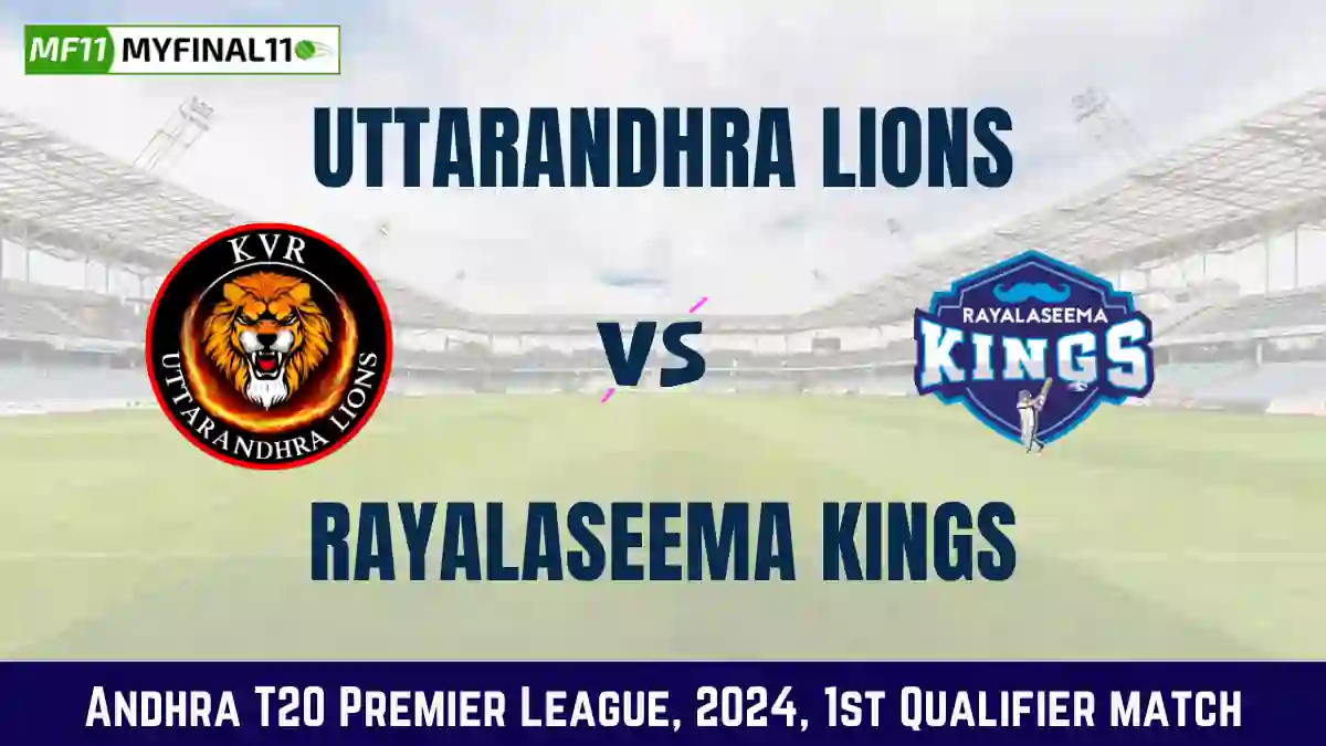 The 1st Qualifier match of the Andhra T20 Premier League 2024 will be between Uttarandhra Lions (UTL) and Rayalaseema Kings (RYLS) at Dr. Y.S. Rajasekhara Reddy ACA-VDCA Cricket Stadium, Visakhapatnam on 11th July 2024 at 06:30 PM IST.