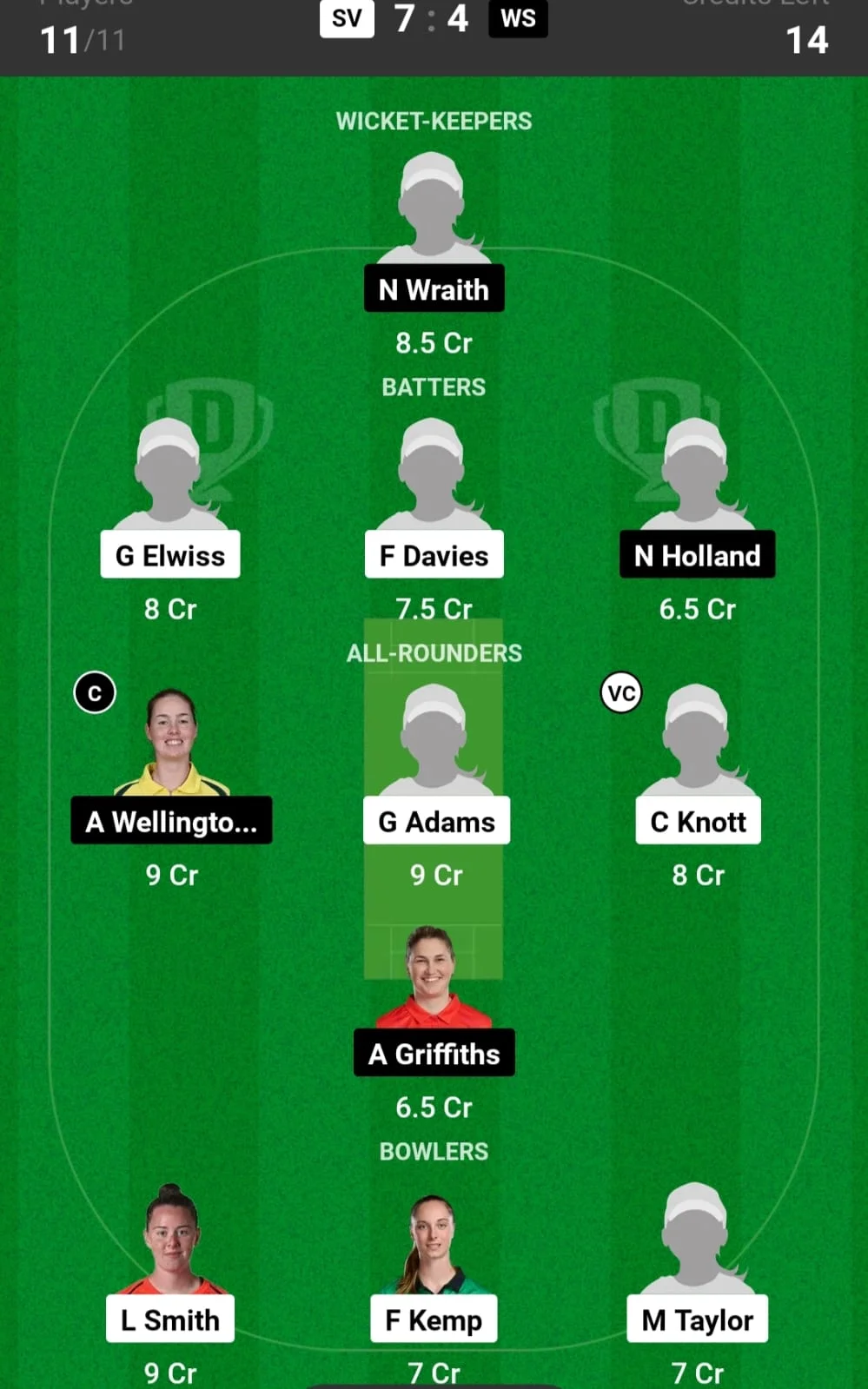 SV vs WS Dream11 Team Prediction – Amanda Wellington & Charli Knott will be the excellent option for C & VC