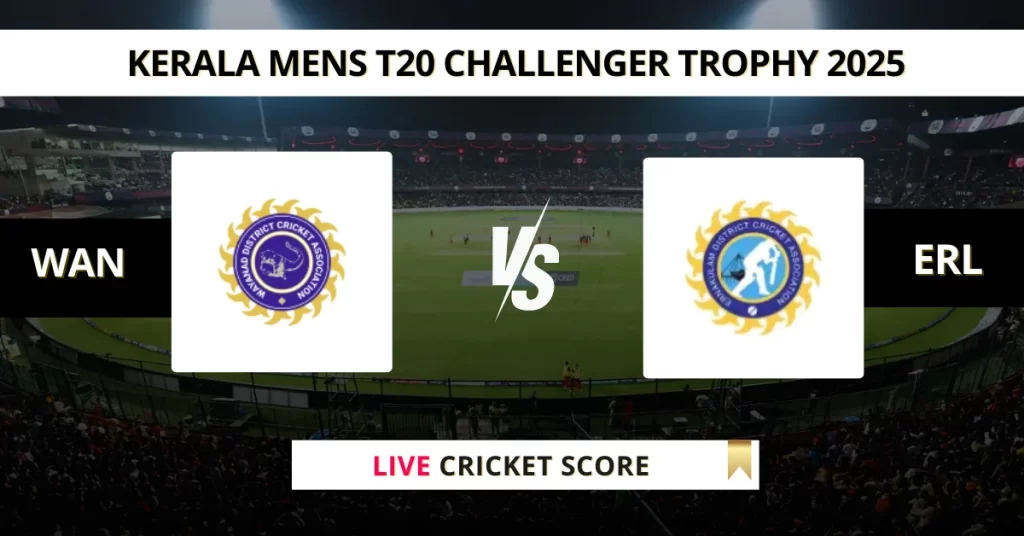 WAN vs ERL Live Cricket Score — The DCA Wayanad (WAN) vs Ernakulam (ERL) Match 21 in the Kerala T20 Men’s Challenger Trophy 2025 is set for May 26, 2025, 8:45 AM IST, at St Xavier’s College Ground, Thiruvananthapuram.