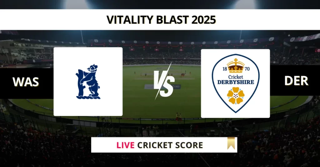 WAS vs DER Live Cricket Score — The Warwickshire (WAS) vs Derbyshire (DER) Match 36 in the Vitality Blast 2025 is set for June 8, 2025, 8:30 PM IST, at Edgbaston.
