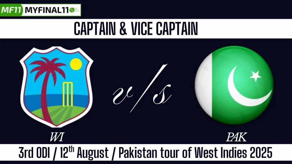 WI vs PAK Top 3 Captain and Vice-Captain picks for 3rd ODI Match – Pakistan Tour of West Indies 2025 – West Indies (WI) will face Pakistan (PAK) in the 3rd ODI match of Pakistan Tour of West Indies 2025. In this article, we will suggest the top three contenders for captain and vice-captain positions on your Pakistan Tour of West Indies Dream11 Team.