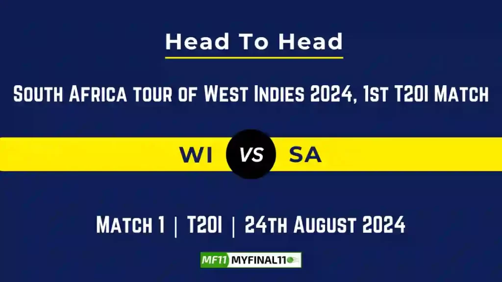 Get all the WI vs SA player battle stats, records, and head-to-head between West Indies (WI) and South Africa (SA). This is the 1st T20I Match of the South Africa tour of West Indies 2024 tournament, held at Brian Lara Stadium, Tarouba, on August 24th, 2024, at 12:30 AM IST.