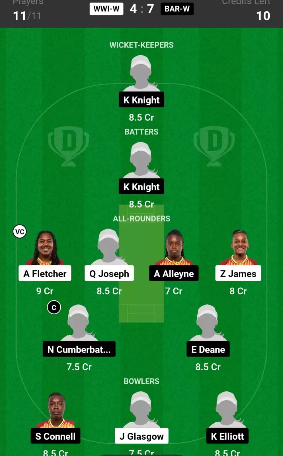 Naijanni Cumberbatch and Afy Fletcher will be the top hot picks for Captain and Vice Captain selection for your dream11 fantasy team
