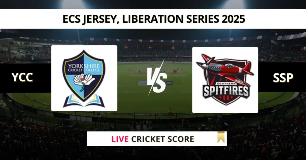 YCC vs SSP Live Cricket Score — The Yorkshire Cricket College (YCC) vs Southern Spitfires (SSP) Match 12 in the ECS Jersey, Liberation Series 2025 is set for May 7, 2025, 5:00 PM IST, at National Cricket Centre.